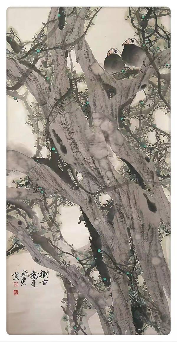 翁國梁 樹古禽來 70×135cm
