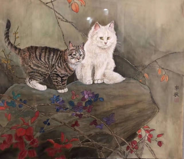季敏 戲貓圖 138x69cm