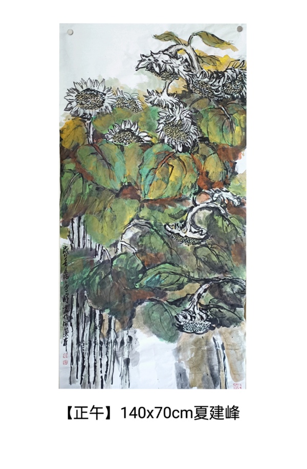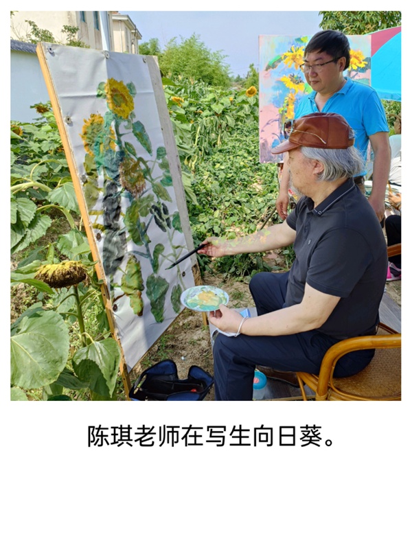 一個(gè)上午將近四個(gè)小時(shí),夏建峰老師和大家一樣,寫生了好幾幅作品,陳琪老師從不同的角度構(gòu)圖,不同的藝術(shù)表現(xiàn),寫生創(chuàng)作了四幅表現(xiàn)向日葵為主題的中國畫作品。