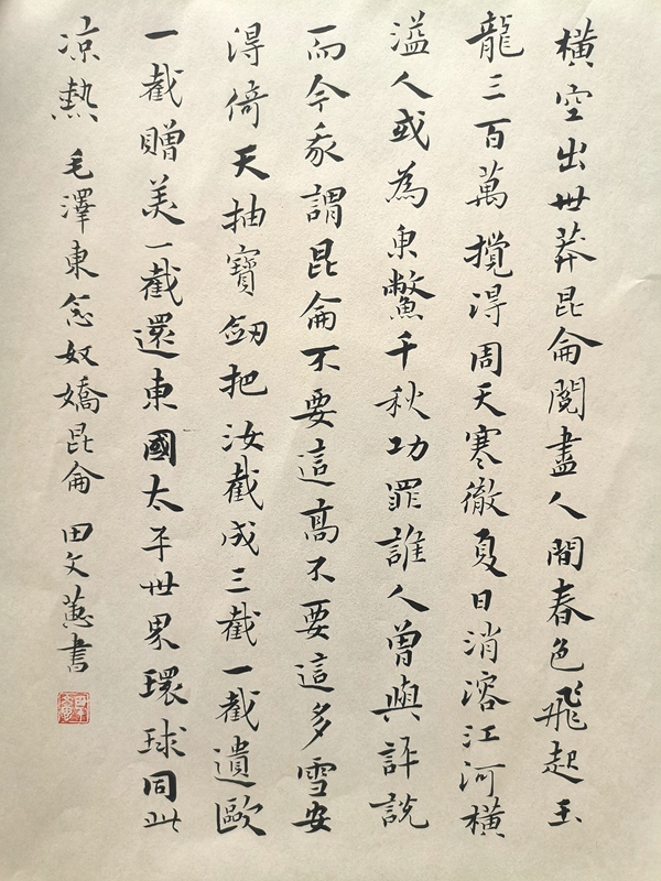 田文蕙,現(xiàn)為中國(guó)書法家協(xié)會(huì)理事、上海市文學(xué)藝術(shù)界聯(lián)合會(huì)委員,上海市書法家協(xié)會(huì)副主席、上海市書法家協(xié)會(huì)婦女工作委員會(huì)主任、上海市楹聯(lián)學(xué)會(huì)書法專業(yè)委員會(huì)名譽(yù)主席、上海市群眾藝術(shù)館書法指導(dǎo)、研究館員。她的作品曾入展全國(guó)第三屆書展,全國(guó)第二、第三、第八屆中青年書展,第一、第二、第三屆全國(guó)婦女書展,第一、第二、第三屆中日婦女書法交流展,第二、第三屆全國(guó)楹聯(lián)展,紀(jì)念抗日戰(zhàn)爭(zhēng)勝利六十周年書展等;先后在全國(guó)的“杏花杯”、“青藤杯”、“中意杯”、“秦聲”書法大賽中四次榮獲一等獎(jiǎng)。