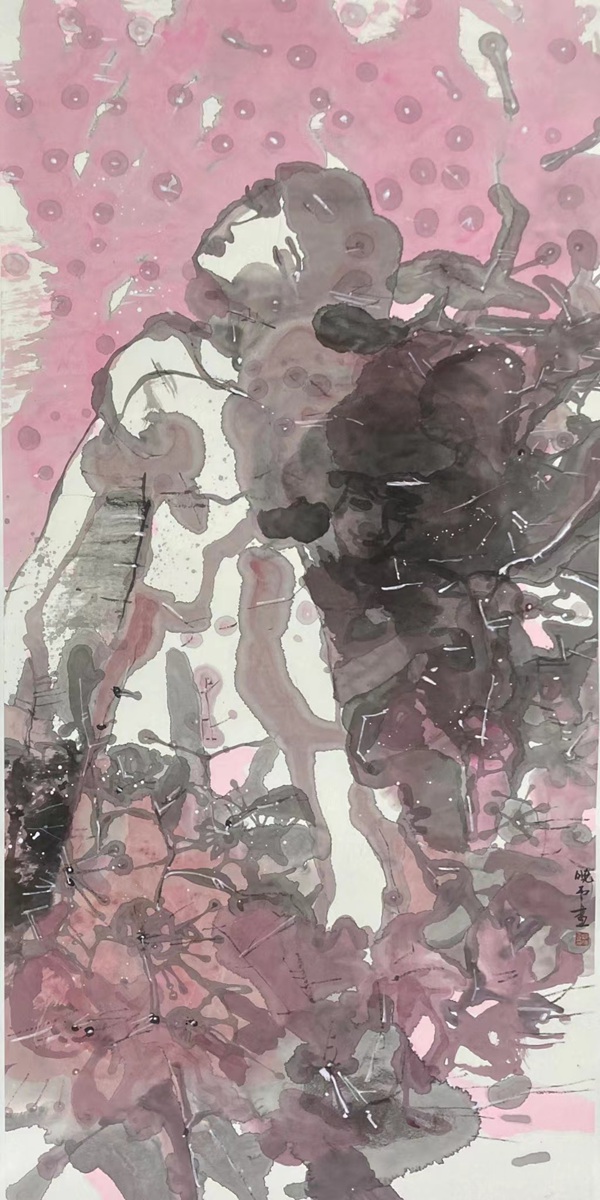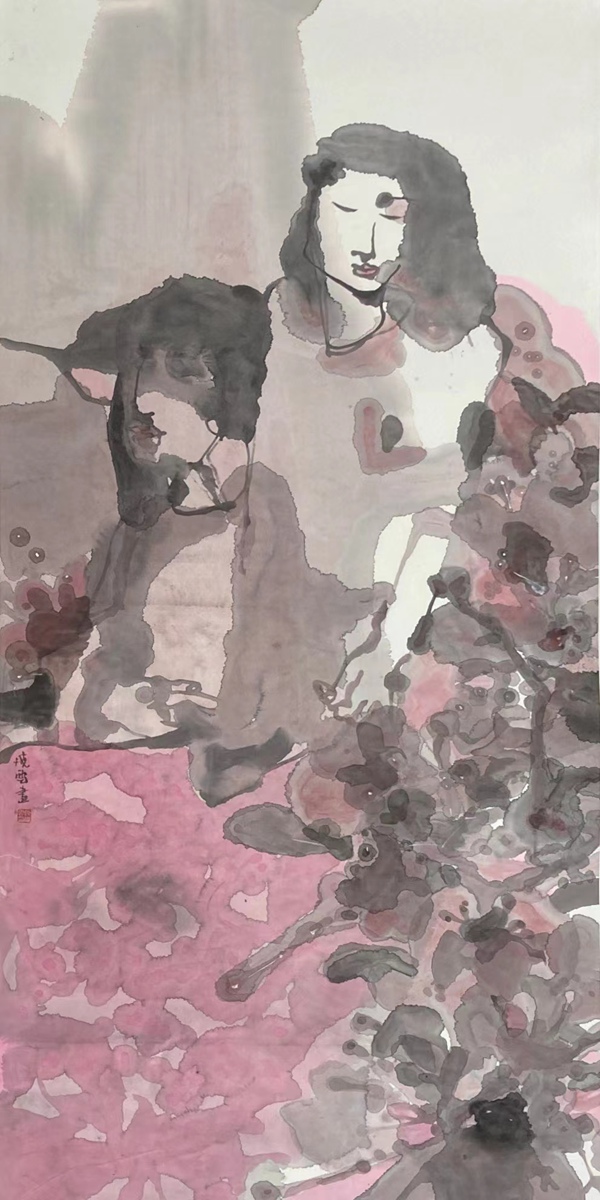 瀅公子和曉云娃娃 no.1 紙本水墨 68×136cm