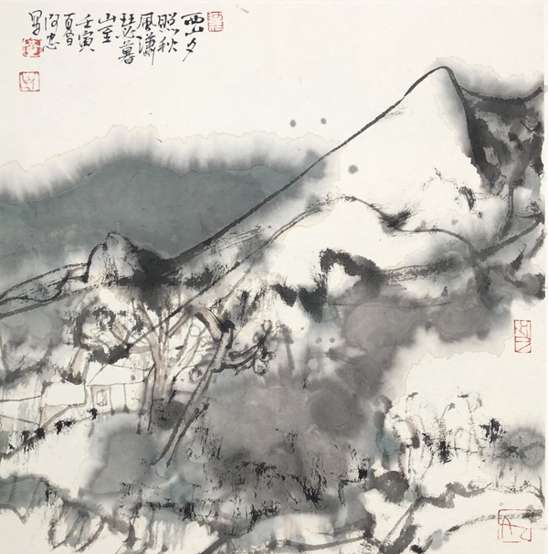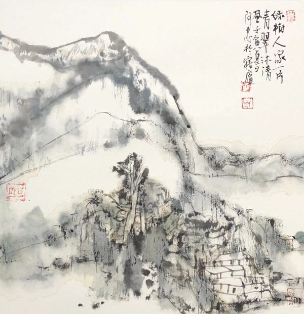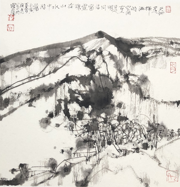 山水中的潑墨、潑彩是中國畫山水的一種形式和視覺。它是將線、點鋪成一個面,或濃、淡、綠、藍;或長方、橢圓、扁平、高下,沖擊畫面,調節效果,奪人眼球。它無關筆墨,而是越千年的隨類賦彩,或是西洋繪畫中的色素鋪設:它亦是中國畫之屬性,它融天地之氣韻,合東方審美之精神。