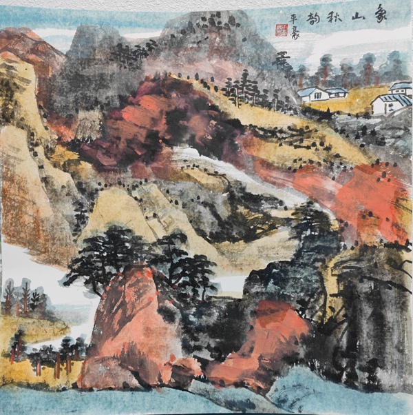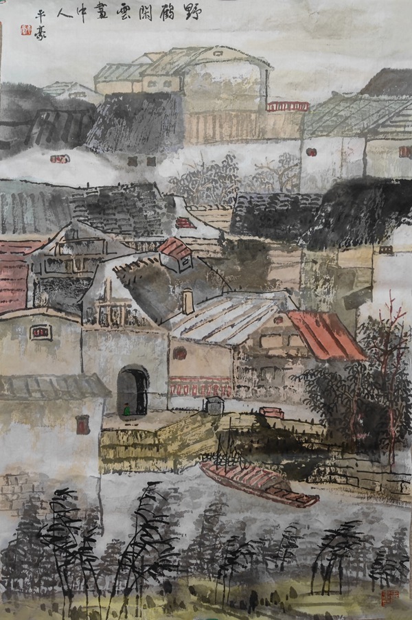山水畫本是往時代中去的,抒情郁郁。平豪畫山水又重生活之情,受南方地域影響,平豪畫山將王蒙的滿山滿景和上龔賢郁郁層染的墨韻,沉郁之中山巒青蔥,草屋居舍,一方清新,真使山往朗潤中去。而深山幽然,層巒疊嶂,畫境也在古氣之中優哉游哉,如同現代人在美山美水中尋得一方凈水凈土。所以,山水畫的創新,其實還是從傳承中獲取生活的情趣,這樣的出新,也就是我們常說的山水的精氣神會使山水郁郁蔥蔥,更給人一種朝氣,平豪的近作追求此境,很生時代之趣的。