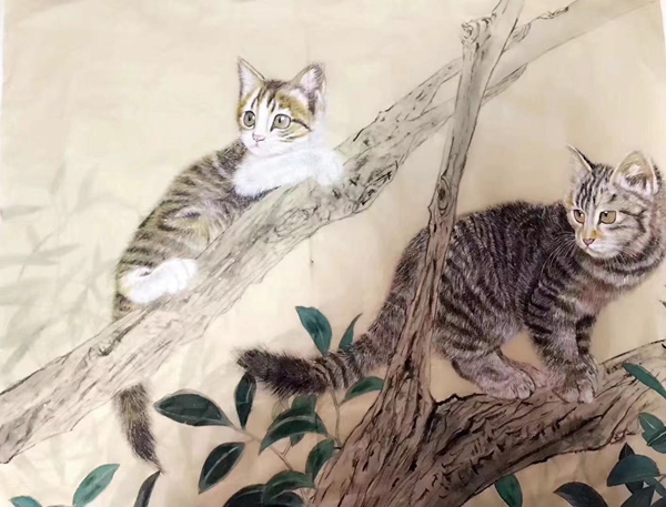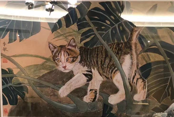 季敏平日里陪伴兒子喂養小區的流浪貓,她靜心觀察貓咪的各種姿態;她畫一張工筆貓咪的時間基本是半年多,貓咪背上的每根毛發,都傾注了她的愛。