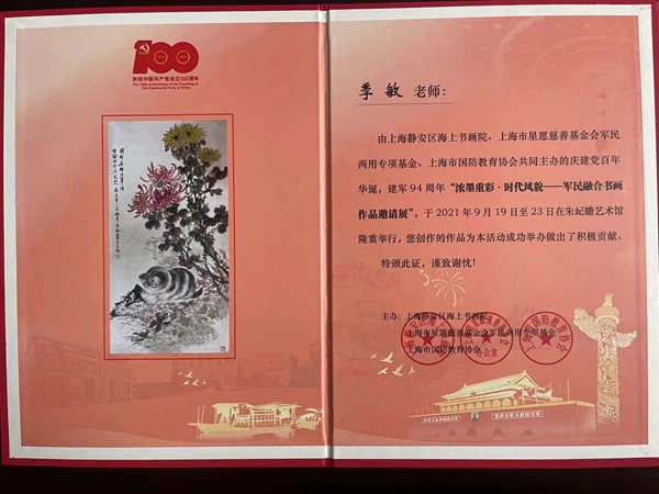 2021年9月 “濃墨重彩 時代風貌——軍民融合書畫作品邀請展”,上海朱屺瞻美術館